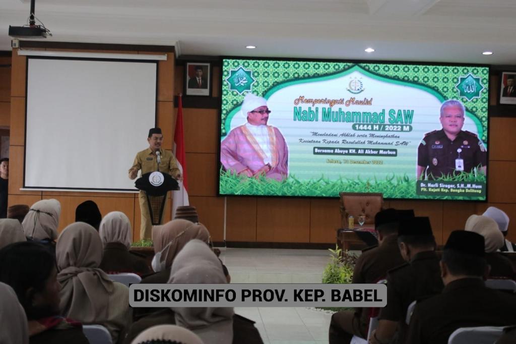 Dengan tema “Mendalami Akhlak serta Meningkatkan kecintaan kepada Rasulullah Muhammad SAW” bersama Buya KH Ali Akbar Marbun. Acara diawali dengan mendengarkan lantunan ayat kitab suci Al-Quran yang dibacakan saudara Maulana Ihsan. Hadir langsung pada acara tersebut, Plt Kajati Babel Dr Harli Siregar beserta pegawai Kejati serta Kepala Dinas Kesehatan (Dinkes) Babel.