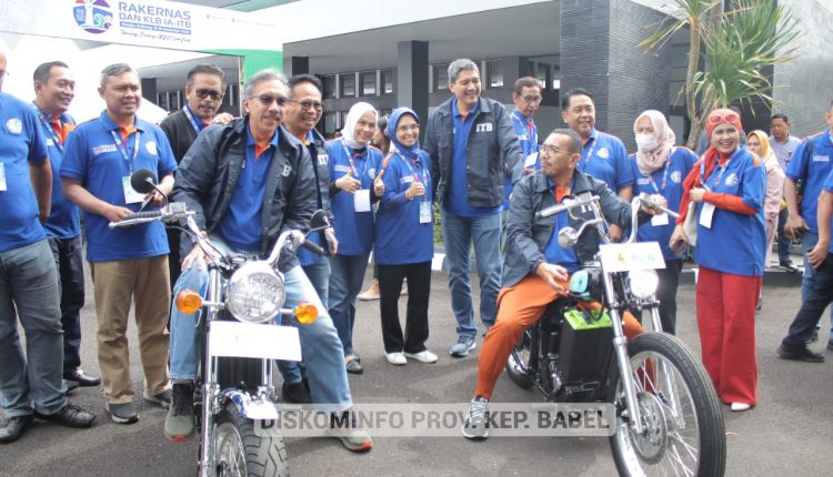 Setelah membuka rakernas, Pj. Gubernur didampingi Sekretaris Jenderal IA-ITB Arya Sinulingga dan Ketua Umum IA ITB Gembong, mencoba motor listrik dari PLN, dan mengunjungi stand-stand UMKM Kep. Babel.