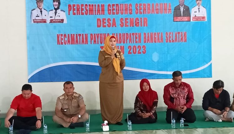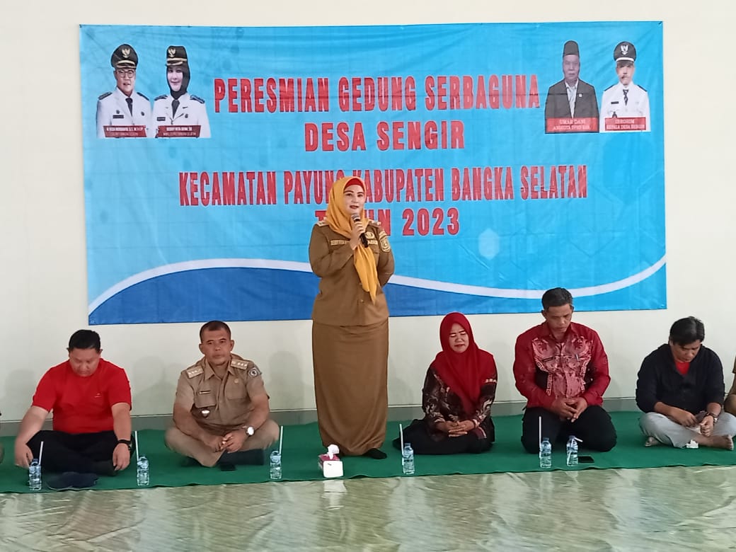 SatuArahNews, Toboali- Wakil Bupati Bangka Selatan Debby Vita Dewi meresmikan Gedung Serbaguna Desa Sengir Kecamatan Payung, Senin (16/01/2023)