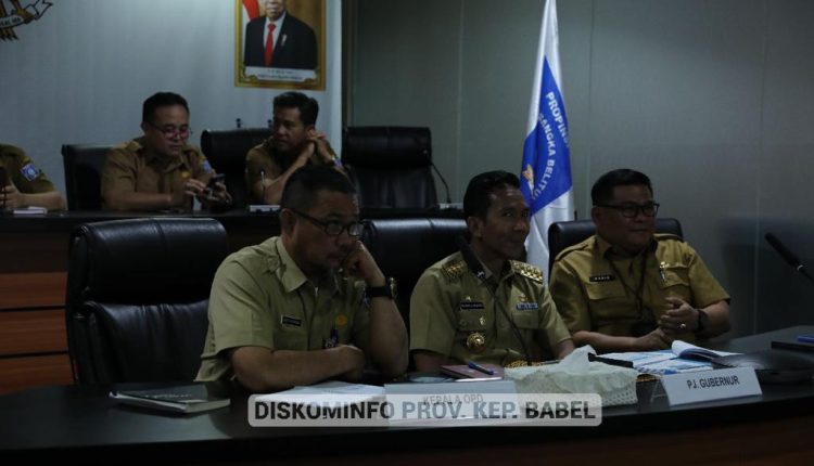 PANGKALPINANG – Penjabat (Pj) Gubernur Kepulauan Bangka Belitung (Kep. Babel) Suganda Pandapotan Pasaribu mengikuti Rapat Koordinasi (Rakor) secara virtual yang diselenggarakan oleh Kementerian Dalam Negeri RI di Ruang Vidcon Gubernur, Selasa (4/4/2023).