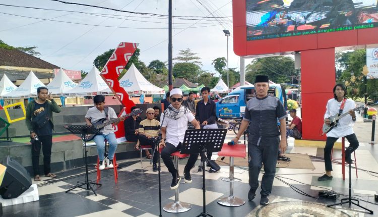 Tampak warga yang melintas di seputaran kawasan tersebut antusias melihat konser religi yang membawa lagu-lagu islami masa kini.
