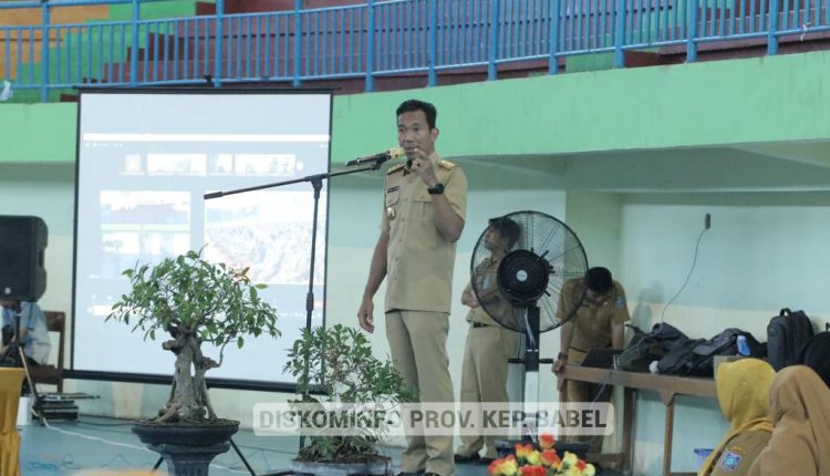 PANGKALPINANG-Penjabat (Pj) Gubernur Kepulauan Bangka Belitung Suganda Pandapotan Pasaribu berkesempatan memberikan arahan dan motivasi kepada lebih kurang 769 pejabat eselon III, IV maupun fungsional di Lingkungan Pemerintah Provinsi Kepulauan Bangka Belitung. Kegiatan diselenggarakan di GOR Sahabuddin Pangkalpinang, 10/4/2023.