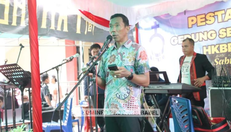 Ajakan itu disampaikan Pj. Gubernur Suganda yang hadir bersama Istri sekaligus Pj. Ketua Tim Penggerak PKK Babel, Maya Suganda Pasaribu, saat menghadiri Pesta Pembangunan Gedung Serbaguna Huria Kristen Batak Protestan (HKBP) Resort Pangkalpinang di Gedung Sopo Godang HKBP Pangkalpinang, Minggu (14/5/23).