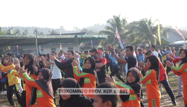 Berdiri di tengah ratusan peserta yang terdiri dari anak-anak TK dan SD, pejabat pemerintah, serta masyarakat sekitar Desa Sengir, Pj Gubernur Suganda terlihat aktif mengikuti gerakan yang dicontohkan oleh instruktur senam.