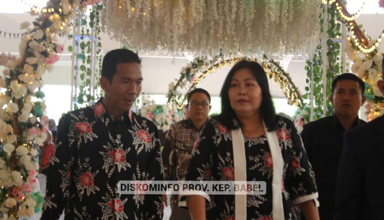 PANGKALPINANG – Penjabat (Pj.) Gubernur Kepulauan Bangka Belitung (Kep. Babel), Suganda Pandapotan Pasaribu beserta istri Maya Suganda Pasaribu, menghadiri undangan pernikahan Rio dan Tiara di Gedung Golden Palace Jl. Delima Siam III Girimaya Pangkalpinang pada Minggu (28/5/2023).