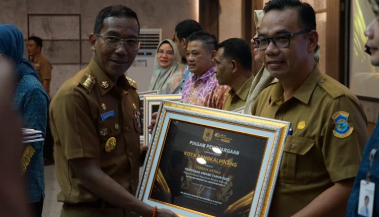 PANGKALPINANG– Pemerintah Kota Pangkalpinang menerima piagam penghargaan Jaminan Sosial Ketenagakerjaan (Paritrana) Award Tahun 2023 tingkat Provinsi Bangka Belitung, Senin (12/6/2023) di Ruang Pasir Padi Kantor Gubernur Bangka Belitung.