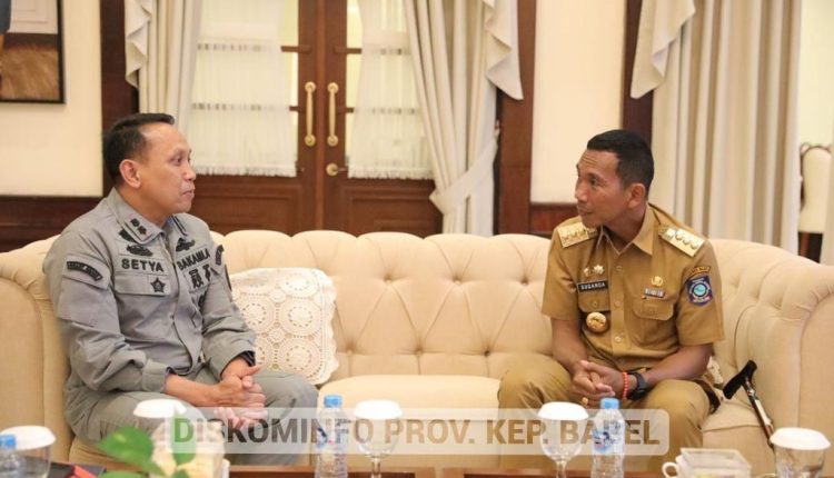 PANGKALPINANG – Kedatangan Kepala Stasiun Badan Keamanan Laut (Bakamla) RI Wilayah Kepulauan Bangka Belitung (Kep. Babel) yang baru Letkol Marinir Setyo Budi Wiranto, di Rumah Dinas Gubernur Kep. Babel, disambut dengan senang hati oleh Penjabat (Pj) Gubernur Kep. Babel Suganda Pandapotan Pasaribu. Orang nomor satu di Bumi Serumpun Sebalai tersebut pun, langsung mengajak Letkol Marinir Setyo untuk berpartisipasi dalam memeriahkan Hari Ulang Tahun (HUT) RI ke-78 di Kep. Babel.