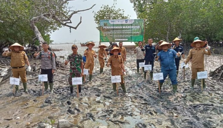 BANGKA SELATAN — Pemerintah Kabupaten Bangka Selatan bersama menanam sebanyak 2000 pohon mangrove dalam rangka memperingati Hari Lingkungan Hidup Sedunia dan Hari Mangrove Sedunia Tahun 2023, di Desa Tukak, Kecamatan Tukak Sadai, Senin (26/6/2023).