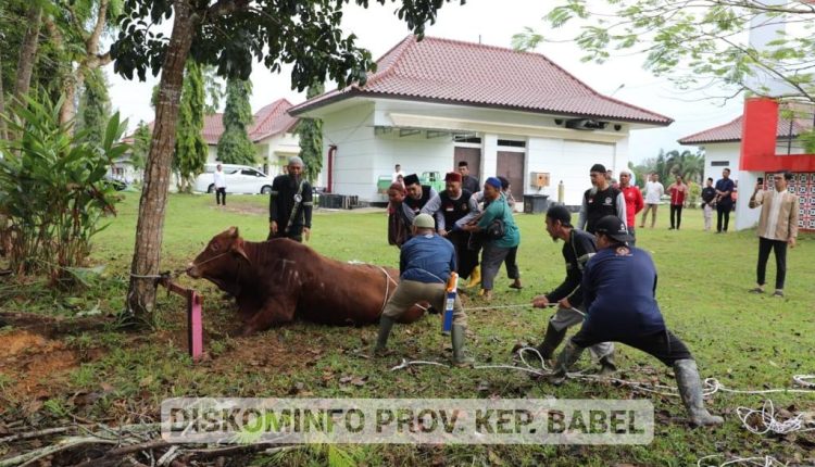 PANGKALPINANG- Dalam rangka merayakan Iduladha 1444 Hijriah, Pemerintah Provinsi (Pemprov) Kepulauan Bangka Belitung (Kep. Babel) melakukan pemotongan 29 sapi kurban.