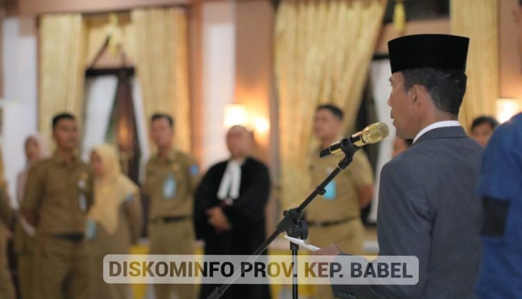 PANGKALPINANG – Penjabat (Pj) Gubernur Kepulauan Bangka Belitung (Kep. Babel), Suganda Pandapotan Pasaribu melantik 297 pejabat fungsional di lingkungan Pemerintah Provinsi (Pemprov) Kep. Babel secara luring dan daring, di Ruang Mahligai Rumah Dinas Gubernur, Selasa (18/7/23).