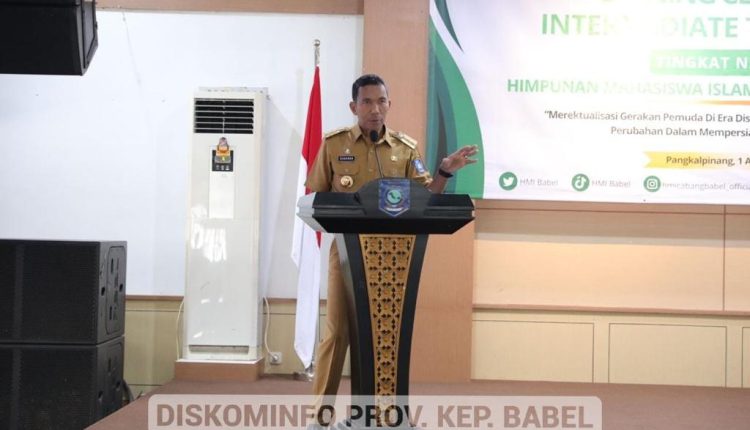 PANGKALPINANG – Penjabat (Pj) Gubernur Kepualauan Bangka Belitung (Kep. Babel), Suganda Pandapotan Pasaribu hadir memberikan sambutan dalam kegiatan Opening Ceremony Intermediate Training (LK II) Tingkat Nasional Himpunan Mahasiswa Islam (HMI) Cabang Bangka Belitung, di Gedung Mahligai Rumah Dinas Gubernur, Selasa (1/8/2023).