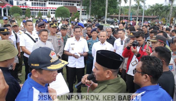 PANGKALPINANG – Ribuan nelayan yang tergabung  Aliansi Nelayan Pesisir melakukan aksi damai di Halaman Kantor Gubernur Kepulauan Bangka Belitung (Babel), Rabu (2/8/2023) pagi.