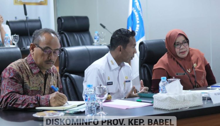 PANGKALPINANG – Penjabat (Pj) Gubernur Kepulauan Bangka Belitung (Kep. Babel) Suganda Pandapotan Pasaribu didampingi Kepala BKPSDMD Kep. Babel Susanti dan Plt. Inspektur Kep. Babel Susanto mengikuti rapat perihal Kebijakan Penjabat Kepala Daerah (Pj. KDH) dalam melakukan mutasi Jabatan Pimpinan Tinggi (JPT) via zoom meeting, di Ruang Video Conference Kantor Gubernur Kep. Babel, Jumat (4/8/2023).