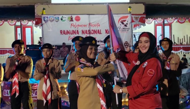 Pelepasan peserta kontingen pramuka Basel itu ditandai dengan menyerahkan Bendera Kontingen Rainas 2023 kepada Ketua Kwarcab pramuka Kabupaten Basel Debby Vita Dewi.