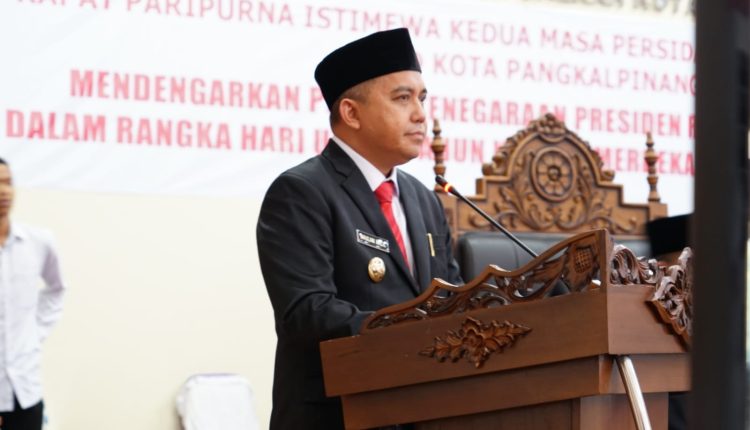 PANGKALPINANG – Wali Kota Pangkalpinang, Dr. H. Maulan Aklil beserta Ketua TP PKK Kota Pangkalpinang, Wakil Wali Kota, Ketua serta Anggota DPRD Kota Pangkalpinang, Sekretaris Daerah, seluruh Asisten serta Kepala OPD dan pejabat di lingkungan Pemerintah Kota Pangkalpinang hadiri Rapat Paripurna Istimewa DPRD Kota Pangkalpinang dalam rangka mendengarkan Pidato Kenegaraan Presiden Republik Indonesia tahun 2023 di Ruang Rapat Paripurna DPRD Kota Pangkalpinang, Rabu (16/8/2023).