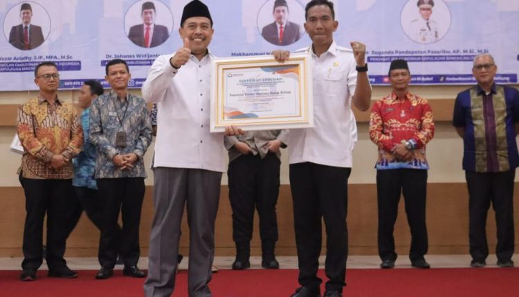 Penghargaan tersebut diserahkan langsung oleh Ketua Ombudsman RI, Mokhammad Najih kepada Penjabat (Pj) Gubernur Kepulauan Bangka Belitung Suganda Pandapotan Pasaribu di Gedung Auditorium Zahari MZ, Kabupaten Belitung Timur, Jumat (25/8/2023) sore.