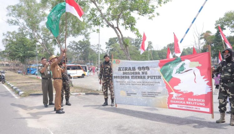PANGKALPINANG – Penjabat (Pj) Gubernur Kepulauan Bangka Belitung (Kep. Babel), Suganda Pandapotan Pasaribu, melepas peserta Kirab Bendera Merah Putih dan Nahdatul Ulama (NU) di Bhaypark Polda Kepulauan Babel, Senin (11/9/2023).