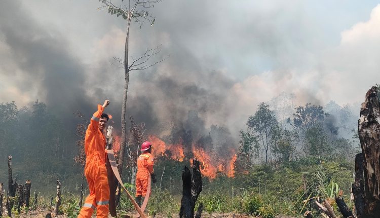Kobaran api semakin membesar, mengakibatkan kurang lebih sekitar 15 hektare hutan dan kebun sawit terbakar dilahap si jago merah.