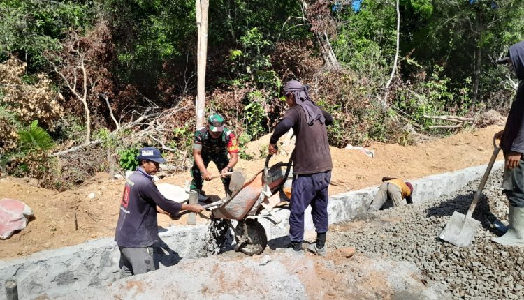 Penutuk – Babinsa Koramil 432-02/Lepar Prada Ferdian Turun Tangan Membantu Masyarakat Dalam Pembuatan Saluran Air Di Desa Penutuk Kec. Lepar Kab. Bangka Selatan , Senin (18/09/2023)