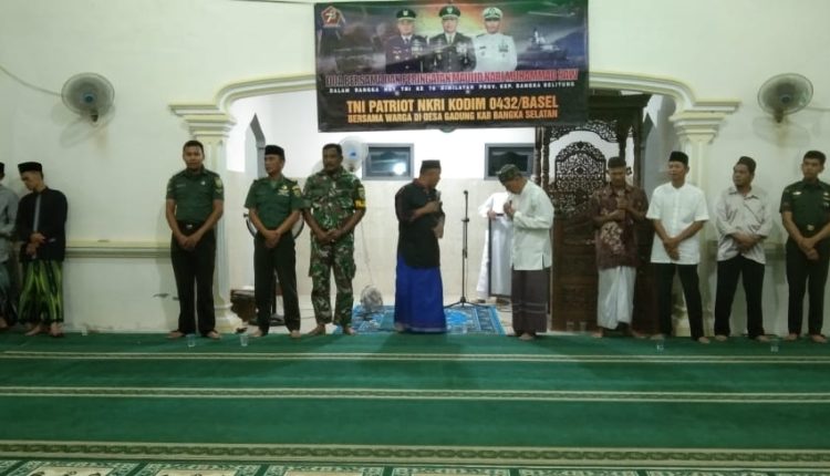 Gadung – Kodim 0432/Basel melaksanakan Doa Bersama guna Peringatan Maulid Nabi Muhammad SAW 1444 H Bertempat Di Masjid Al – Mutaqin Jalan Asam Desa Gadung Kec. Toboali Kab. Bangka Selatan , Rabu (27/09/2023).