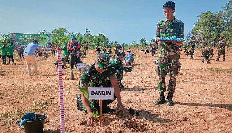TOBOALI- Kodim 0432 Bangka Selatan menanam sebanyak 200 bibit pinang di lokasi Hutan lindung lubuk besar Parit 3 Kelurahan Toboali kabupaten Bangka selatan, Jumat (08/12/2023) pagi.