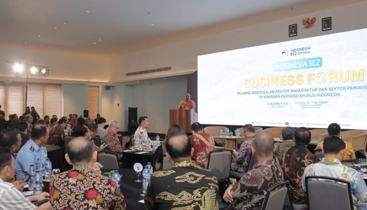 TANJUNGPANDAN – Sekretariat Jenderal Dewan Nasional Kawasan Ekonomi Khusus (KEK) menggelar acara Indonesia _Special Economic Zone (SEZ) Business Forum_ tahun 2023, berlangsung di Sheraton Belitung Resort KEK Tanjung Kelayang, Dusun Timur Raya, Kecamatan Sijuk, Kabupaten Belitung, Rabu (13/12/23).