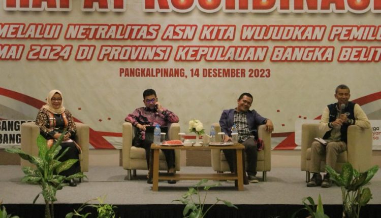 PANGKALPINANG – Sekretaris Daerah (Sekda) Kepulauan Bangka Belitung (Kep. Babel), Naziarto menekankan pentingnya para Aparatur Sipil Negara (ASN) untuk menjaga netralitas selama pelaksanaan Pemilu 2024. Hal itu ia sampaikan dalam Rapat Koordinasi (Rakor) Netralitas ASN yang diselenggarakan oleh Badan Kesatuan Bangsa dan Politik (Bakesbangpol) Prov. Kep. Babel Babel, Kamis (14/12/2023).