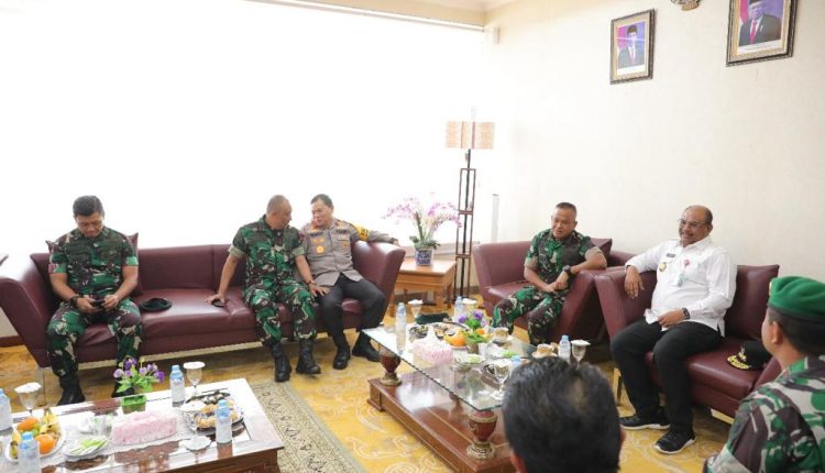 PANGKALPINANG – Penjabat (Pj) Gubernur Kepulauan Bangka Belitung Safrizal ZA bersama Forum Koordinasi Pimpinan Daerah (Forkopimda) menyambut kedatangan Panglima Kostrad (Pangkostrad) Mayor Jenderal (Mayjen) Muhammad Saleh Mustafa di VVIP Bandara Depati Amir, Jumat (15/12/2023).