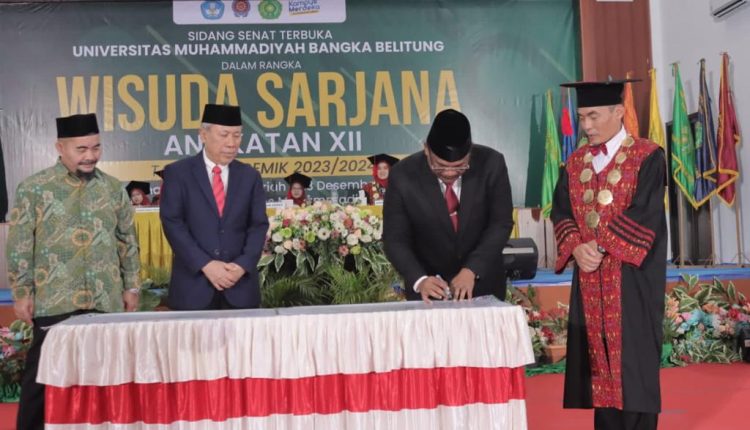 Hal tersebut ia sampaikan ketika menghadiri Wisuda Sarjana Angkatan XII Universitas Muhammadiyah Bangka Belitung di Gedung Auditorium Sofyan Tsauri Universitas Muhammadiyah Pangkalpinang, pada Sabtu (23/12/2023).