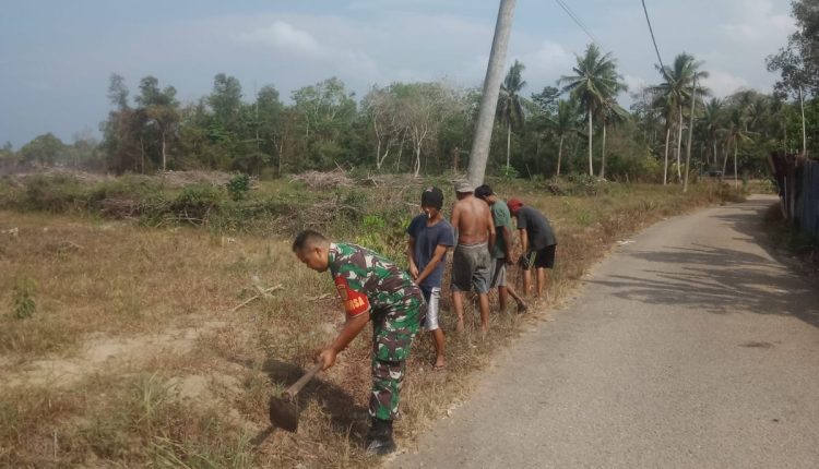 SatuArahNews- Babinsa Koramil 432-02/Payung bersama masyarakat melaksanakan kegiatan gotong royong bersama membersihkan selokan dan jalan Desa Rajik Kecamatan Simpang Rimba, minggu (07/01/2024) pagi.