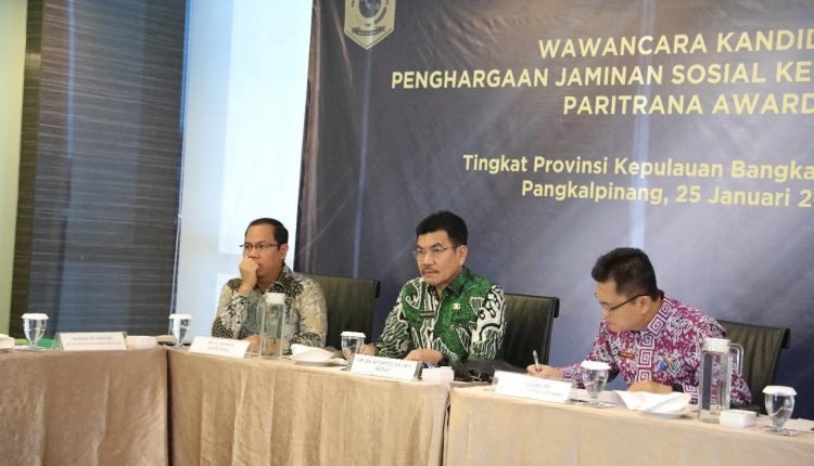 PANGKALPINANG – Sekda Naziarto bersama 8 orang lainnya yang tergabung dalam Tim Panelis Penghargaan Paritrana Award, melakukan wawancara langsung kepada seluruh kandidat bertempat di Hotel Novotel, (25/1/2024), meliputi kategori pemerintah daerah dari kabupaten/kota yang diwakili Kepala Daerah masing- masing daerah kecuali Kabupaten Belitung dan Belitung Timur dilakukan secara zoom, serta kandidat pimpinan dari kategori perusahaan/badan usaha dari beberapa sektor.
