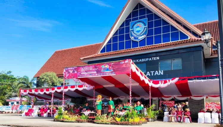 TOBOALI — Pemerintah Kabupaten (Pemkab) Bangka Selatan (Basel) menggelar upacara dalam rangka memperingati Hari Jadi ke-21 Kabupaten Bangka Selatan, Sabtu (27/1). Bertindak sebagai inspektur dalam upacara yang digelar di halaman kantor bupati tersebut yakni Wakil Bupati (Wabup) Basel Debby Vita Dewi.