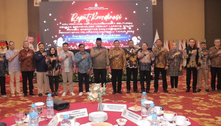 PANGKALPINANG – Penjabat (Pj) Gubernur Kepulauan Bangka Belitung bersama Forkopimda dan KPU Provinsi Kepulauan Bangka Belitung memastikan persiapan tahapan pemilu di Bangka Belitung berjalan lancar dan kondusif. Hal itu disampaikannya saat menghadiri acara Rapat Koordinasi Komisi Pemilihan Umum (KPU) Provinsi Kep. Babel di Swisbell Hotel Pangkalpinang, Sabtu (27/01/2024).
