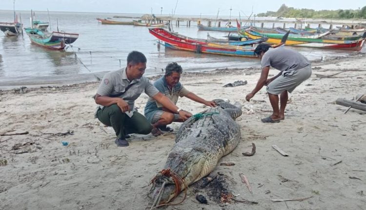 “Tidak memungkinkan untuk dibawa ke tempat penakaran mengingat kondisinya juga sudah lemah dan hampir mati. Saya sarankan buaya besar itu agar dilakukan penguburan di sana,” katanya.