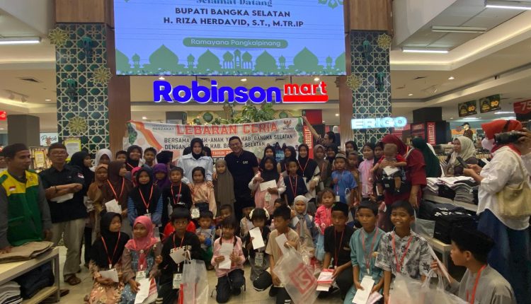 TOBOALI- Bupati Kabupaten Bangka Selatan Riza Herdavid mengajak puluhan anak anak yatim berbelanja kebutuhan lebaran Idul Fitri 1445 hijriah di salah satu pusat perbelanjaan yang ada di Pangkal Pinang Kepulauan Bangka Belitung.