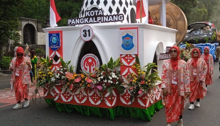 Mobil hias dari Dekranasda Kota Pangkalpinang ini pun diiringi oleh pengiring yang menggunakan baju batik motif nol kilometer yang merupakan batik khas Kota Pangkalpinang. Parade ini disaksikan langsung oleh Iriana Joko Widodo yang menjadi tamu kehormatan di panggung utama.
