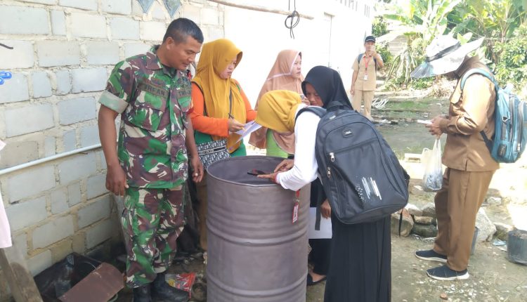 BANGKA SELATAN-Babinsa Koramil 432-02/Payung, Kodim 0432/Basel, Serka Irfan bersama petugas Puskesmas Batu Betumpang Kabupaten Bangka Selatan menggencarkan edukasi Pemberantasan Sarang Nyamuk (PSN) kepada warga sekitar, menyikapi tingginya eskalasi kasus demam berdarah.