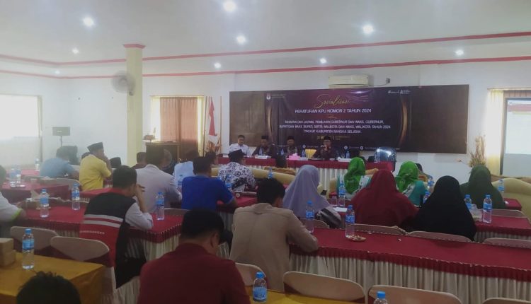 TOBOALI – Menjelang pelaksanaan tahapan dan jadwal Pilkada, Komisi Pemilihan Umum (KPU) Kabupaten Bangka Selatan (Basel) menggelar kegiatan sosialisasi Peraturan KPU nomor 2 tahun 2024 tingkat Kabupaten Basel.