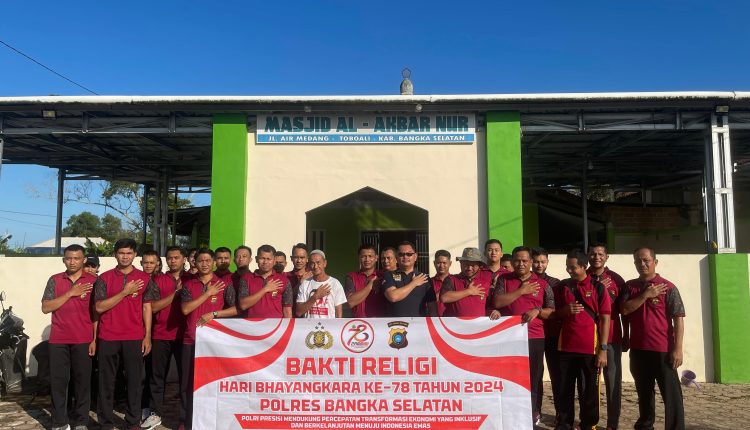 TOBOALI- Kepolisian Resor Kabupaten Bangka Selatan Bangka Belitung membersihkan tempat ibadah umat beragama Islam guna menciptakan suasana nyaman, dan bersih terlebih saat jemaah menjalankan ibadah salat Idul adha.