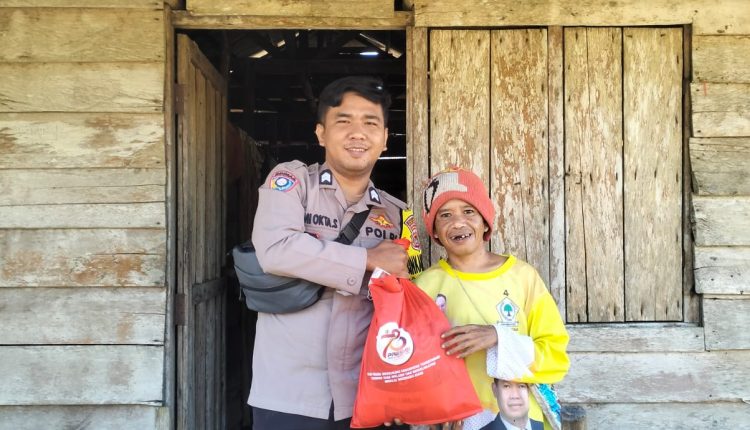 PAYUNG- Kepolisian Sektor (Polsek) Payung Kabupaten Bangka Selatan menyalurkan 28 paket sembako untuk 14 Desa yang ada di Kecamatan Payung dan Kecamatan Pulau Besar, dalam rangka peringatan HUT Bhayangkara ke-78.
