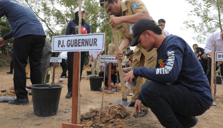 PANGKALPINANG – Penjabat Sekretaris Daerah (Pj. Sekda) Kepulauan Bangka Belitung (Kep. Babel), Fery Afrianto menyambut baik kegiatan penanaman bibit pohon serentak yang digelar Kepolisian Daerah (Polda) Babel dalam rangkaian Peringatan Hari Bhayangkara Ke- 78 Tahun 2024. Penanaman bibit pohon yang dilaksanakan Polda Babel mengambil tempat di kawasan Terminal VIP Bandara Depati Amir. Senin, (24/6/2024).
