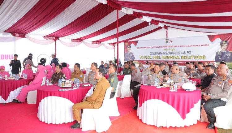 LUBUK BESAR – Menyambut Hari Bhayangkara Ke-78, Polda Kepulauan Bangka Belitung (Kep. Babel) menggelar beragam kegiatan sosial, di antaranya pemberian bantuan sosial, bakti sosial religi, donor darah, bedah rumah hingga pembuatan fasilitas air bersih kepada warga yang membutuhkan. Kegiatan ini berlangsung di Lapangan Desa Perlang, Kabupaten Bangka Tengah, Selasa (25/6).