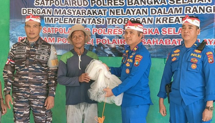Puluhan masyarakat dan nelayan terlihat antusias mengikuti program Polairud sahabat nelayan dari Kepolisian Air dan Udara Polres Bangka Selatan.