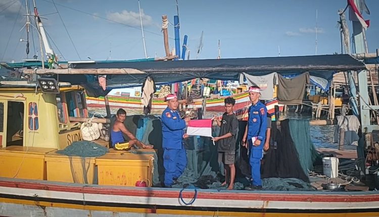 TOBOALI- Polisi Air dan Udara (Polairud) Polres Bangka Selatan membagikan puluhan bendera merah putih yang diperuntukkan bagi kapal nelayan serta masyarakat pesisir yang tinggal di Desa Sadai dan Pulau Kelapan Kabupaten Bangka Selatan.