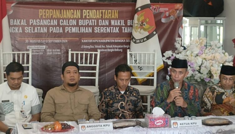 TOBOALI- Komisi Pemilihan Umum (KPU) Kabupaten Bangka Selatan Kepulauan Bangka Belitung secara resmi memperpanjang masa tahapan pendaftaran pencalonan Bupati dan Wakil Bupati Bangka Selatan pada Pilkada serentak 2024.
