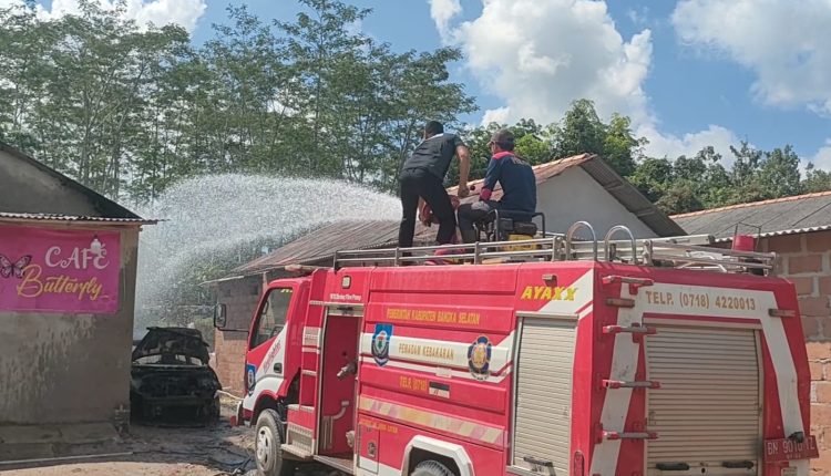 TOBOALI- Pemadam kebakaran Kabupaten Bangka Selatan Kepulauan Bangka Belitung mengerahkan dua unit armada kebakaran dan 10 personel untuk memadamkan 1 unit mobil yang terbakar di kawasan tempat hiburan malam (THM).