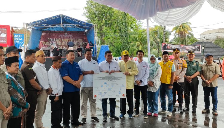 TOBOALI- Komisi Pemilihan Umum (KPU) Kabupaten Bangka Selatan Kepulauan Bangka Belitung menggelar deklarasi kampanye damai pemilihan Bupati dan Wakil Bupati Basel di Simpang Lima Habang, selasa (24/9/2024).