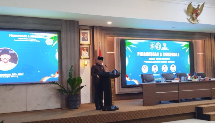 PANGKALPINANG – Ketua DPRD Kepulauan Bangka Belitung (Babel), Didit Srigusjaya, menghadiri acara pengukuhan pengurus Majelis Ulama Indonesia (MUI) Babel periode 2025-2030 yang berlangsung di Kantor Gubernur Babel, Senin (24/2/2025).