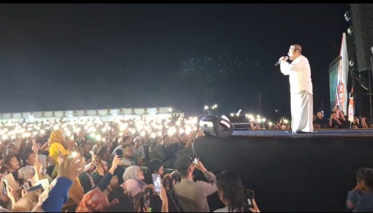 TOBOALI- Konser shalawatan Hadad Alwi dan tausiah ustad Ucai pada penutupan malam puncak Hari ulang tahun (HUT) ke-22 Tahun Kabupaten Bangka Selatan di sport center Pemkab Basel berlangsung meriah, Rabu (26/02/2025) malam