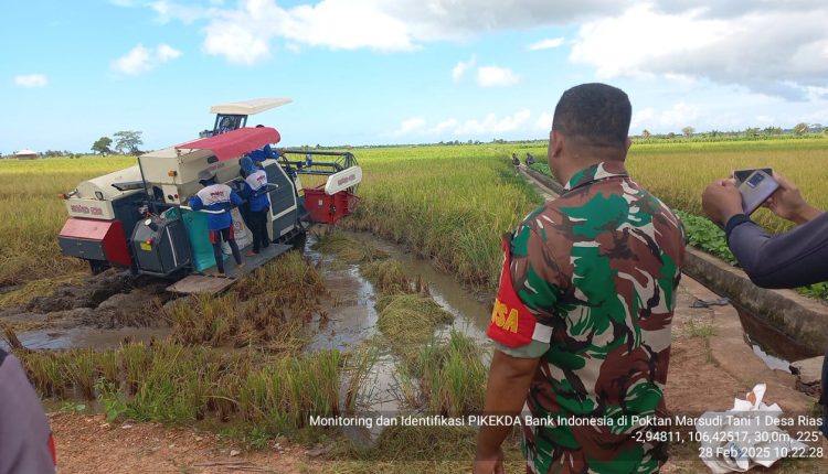 Satuarahnews.com – Babinsa Koramil 432-01/Basel melakukan pendampingan terhadap penyerapan gabah kering panen petani di Desa Rias Toboali.